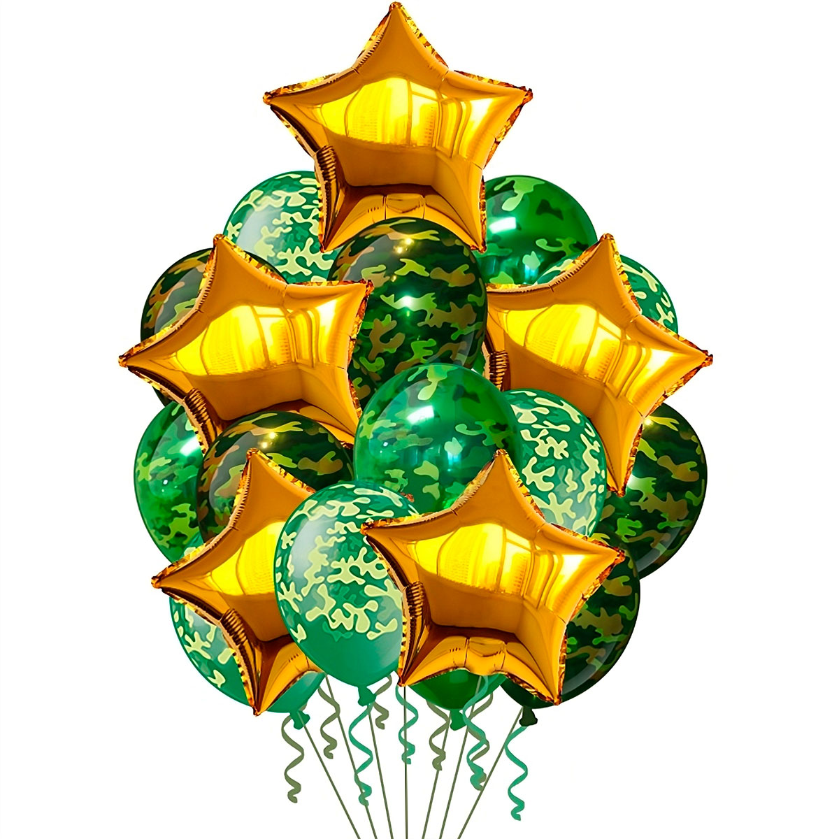 Букет из шаров «С 23 февраля» станет отличным поздравлением для настоящего защитника. Семь гелиевых шаров и пять фольгированных шаров в форме звезды создают праздничную атмосферу и подчеркивают уважение и признательность. Блеск фольгированных звезд символизирует силу и мужество, делая этот букет прекрасным подарком на День защитника отечества.