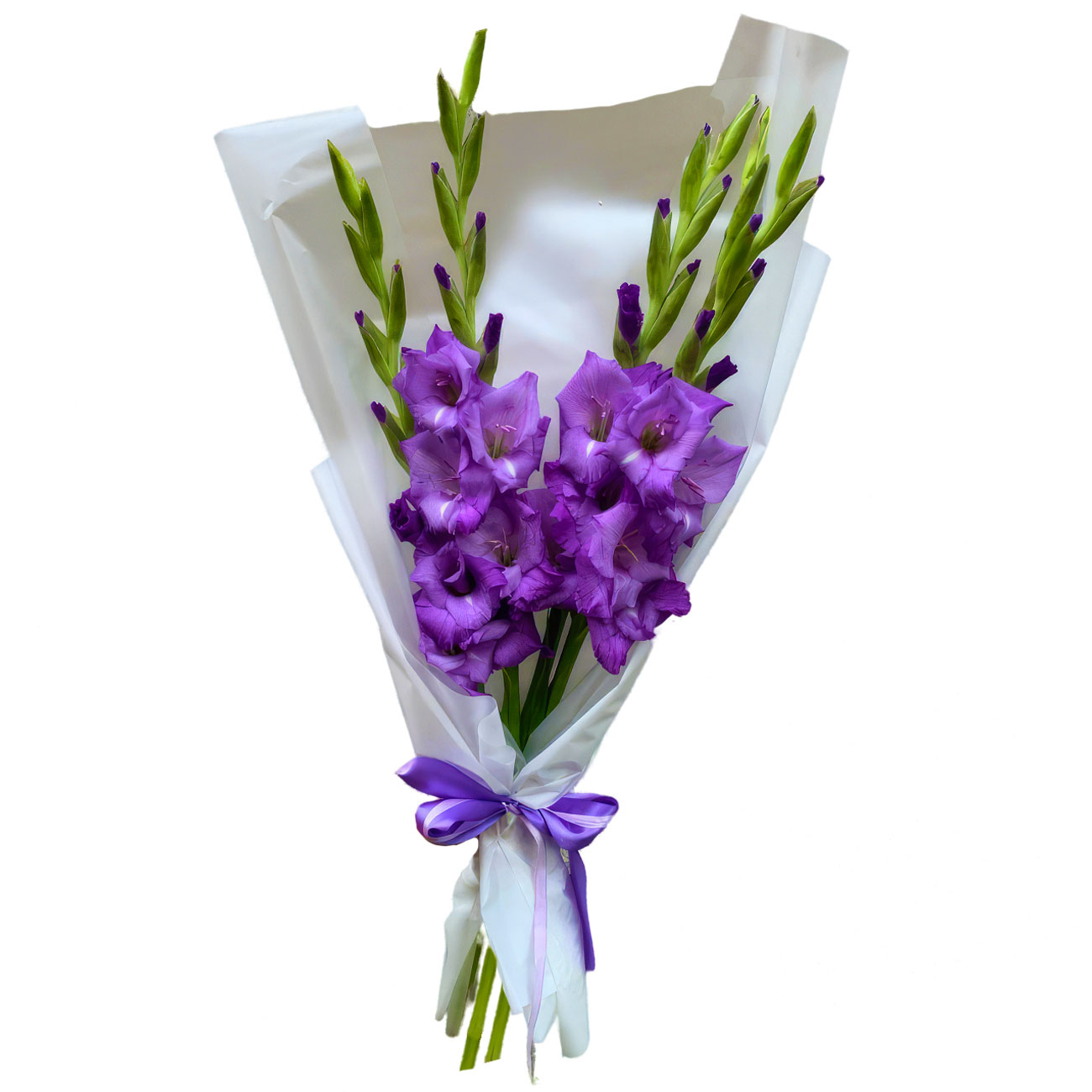 Гладиолус фиолетовый. Упаковка (лента, пленка, крафт, сетка, пленка матовая)