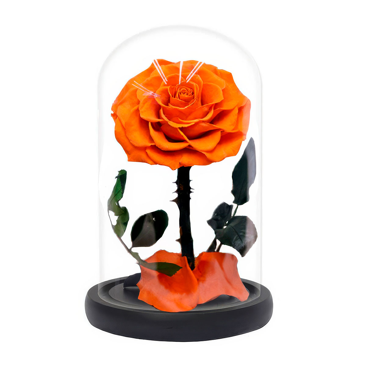 Стабилизированная вечная роза в колбе оранжевая.