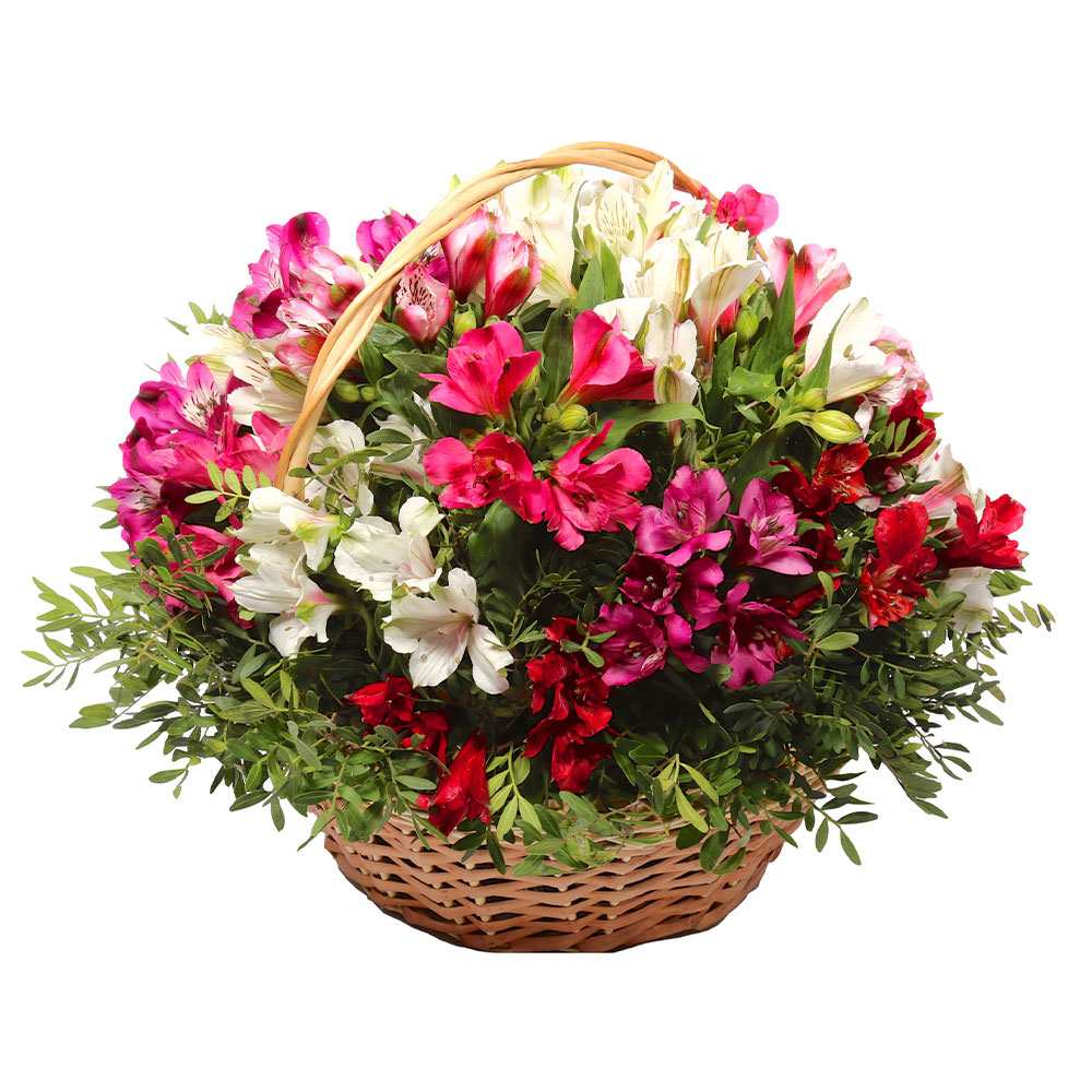 Цветы в корзинке «Краски альстромерий» с доставкой по г Сосновка: вы можете купить букет в интернет-салоне цветов «Флормания» по цене от 3490 руб.